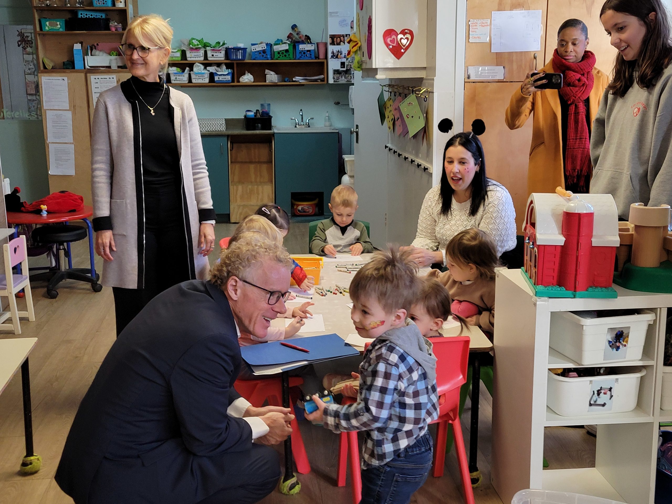 Le ministre a pris le temps de rencontrer les enfants des groupes de deux et trois ans présents à l’Atelier du petit prince vendredi matin.