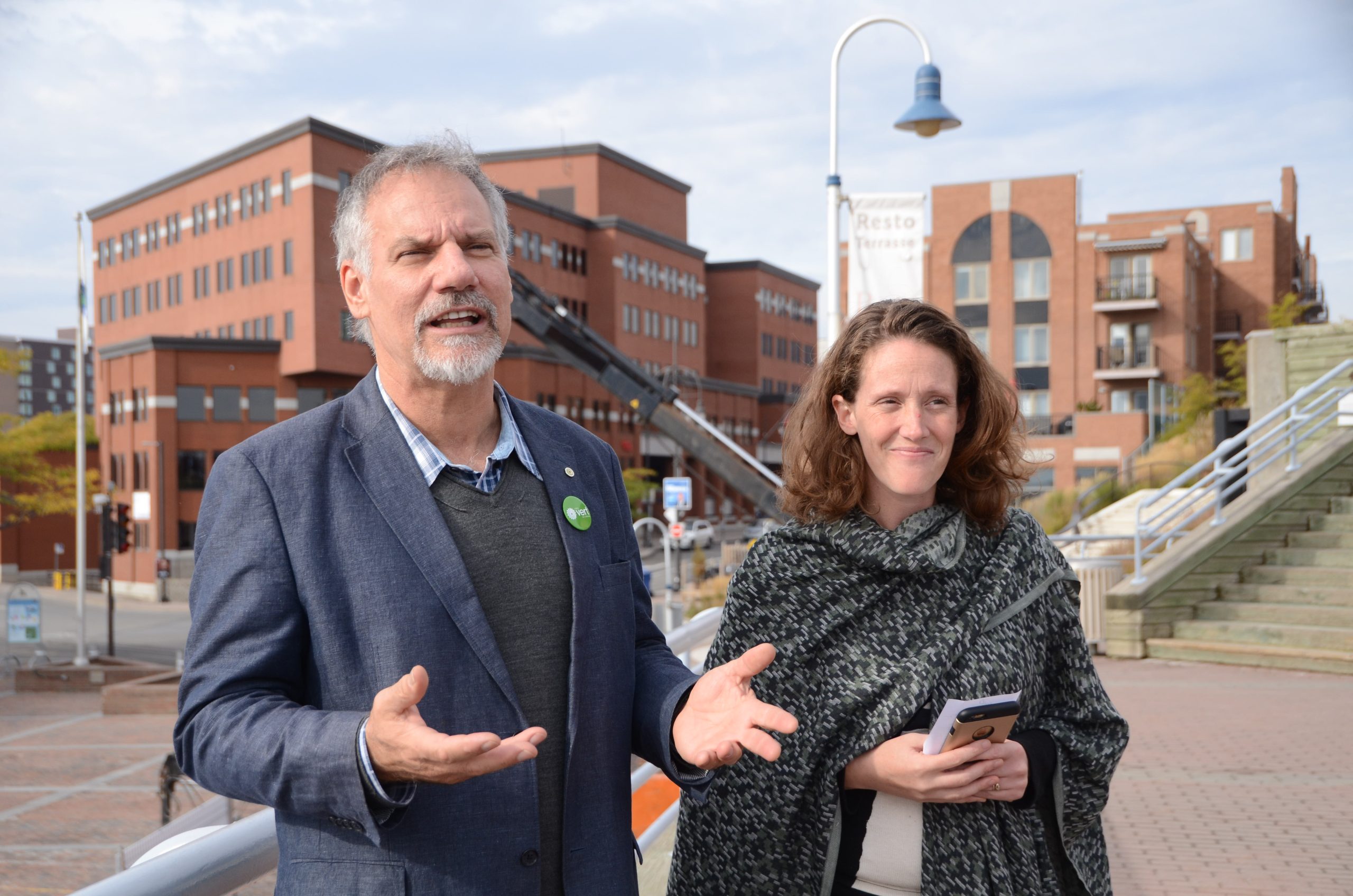 POLITIQUE. JiCi Lauzon et Corina Bastiani, candidat dans Pierre-Boucher-Les Patriotes-Verchères et candidate dans Bécancour-Nicolet-Saurel pour le Parti vert du Canada, étaient de passage à Trois-Rivières mardi matin pour parler politique et environnement.
