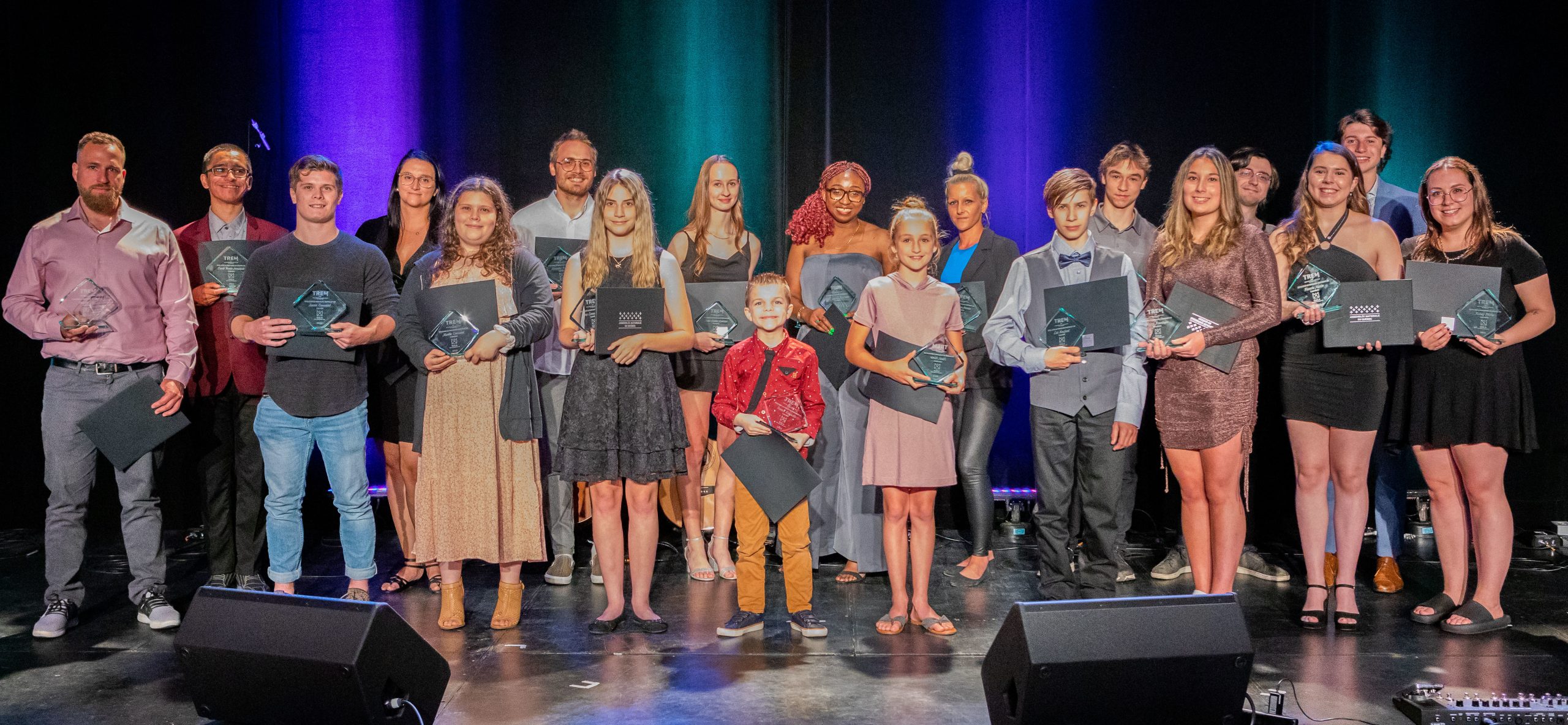 Souhaitant mettre en valeur différents parcours menant à la réussite éducative, la TREM a initié un “Avis de recherche” en octobre 2021, qui a permis de sélectionner 20 élèves et étudiants se distinguant par leurs efforts, leurs réalisations, ou par leur persévérance. Provenant de tous les territoires de la Mauricie, ces élèves et étudiants, âgés de 6 à 42 ans, étaient tous présents à Espace Shawinigan, accompagnés de la personne qui les avait nominés, mais aussi de leurs familles et amis. C’est lors de cette soirée qu’ils ont reçu les honneurs devant une salle comble. Trophée en main, chacun est reparti avec une carte-cadeau d’une valeur de 250$ d’un commerce ou d’une entreprise de la région.