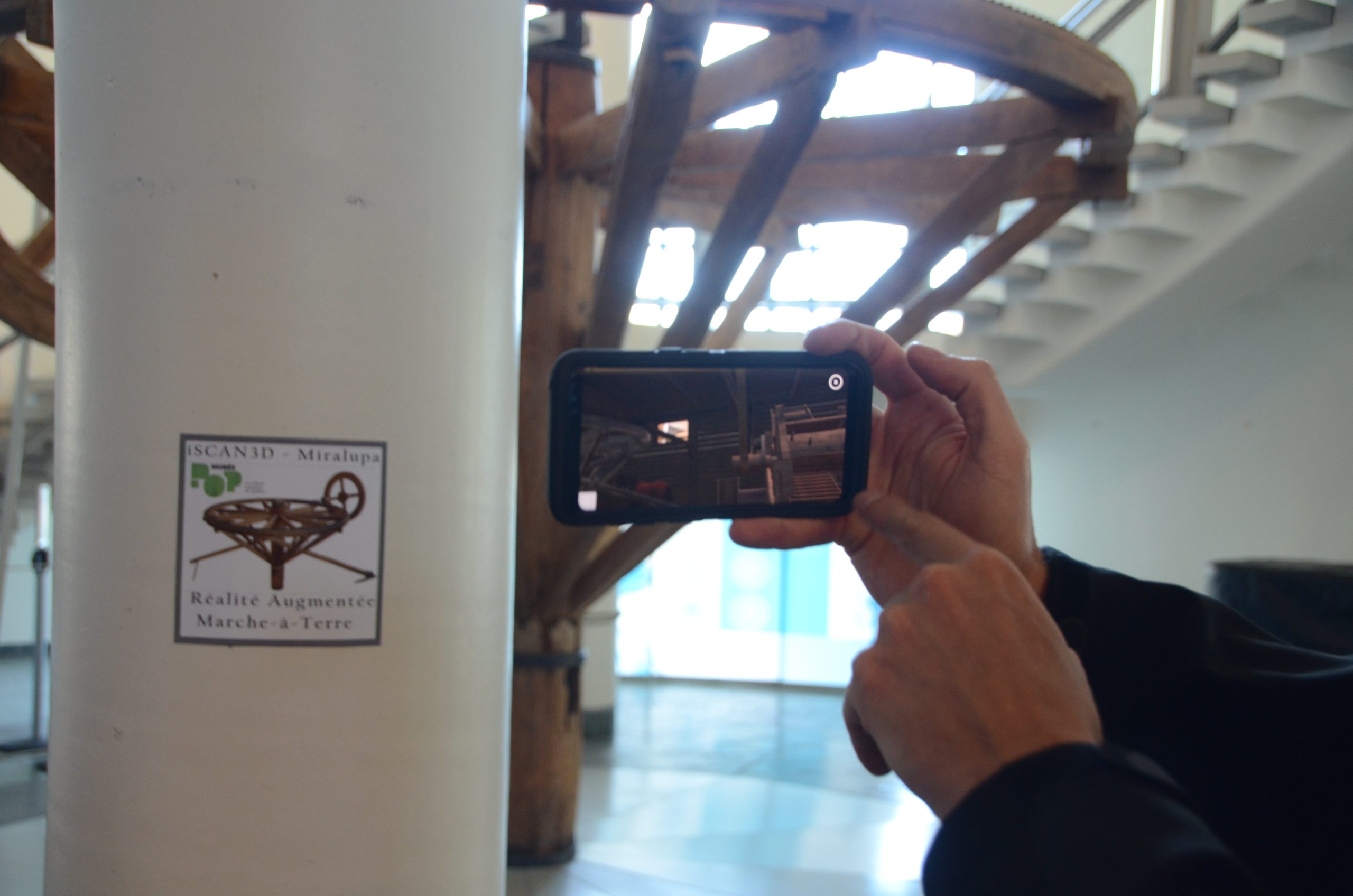 Un second prototype est issu de la collaboration de trois entreprises. Grâce au travail de numérisation 3D réalisé par iSCAN et à l’expertise en réalité augmentée de Miralupa, des animations 3D de certains objets de la collection du Musée ont été réalisées et pourront être vues par les visiteurs en réalité augmentée sur les tablettes de Concept numérique. En effet, les visiteurs pourront désormais voir s’animer, entre autres, le célèbre marche-à-terre au rez-de-chaussée du Musée POP. Comme les objets visés par ce prototype de réalité augmentée sont des artefacts, les visiteurs ne peuvent pas les toucher, mais pourront désormais mieux en comprendre le fonctionnement.