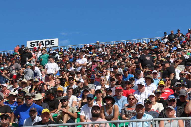 “Sinon, c’est un très beau week-end. Les gens sont au rendez-vous et on a même battu notre record de moitié-moitié du vendredi et du samedi, alors ça démontre que même malgré la pluie, on a du monde dans les gradins. On espère d’ailleurs battre notre record de moitié-moitié également aujourd’hui (dimanche).”