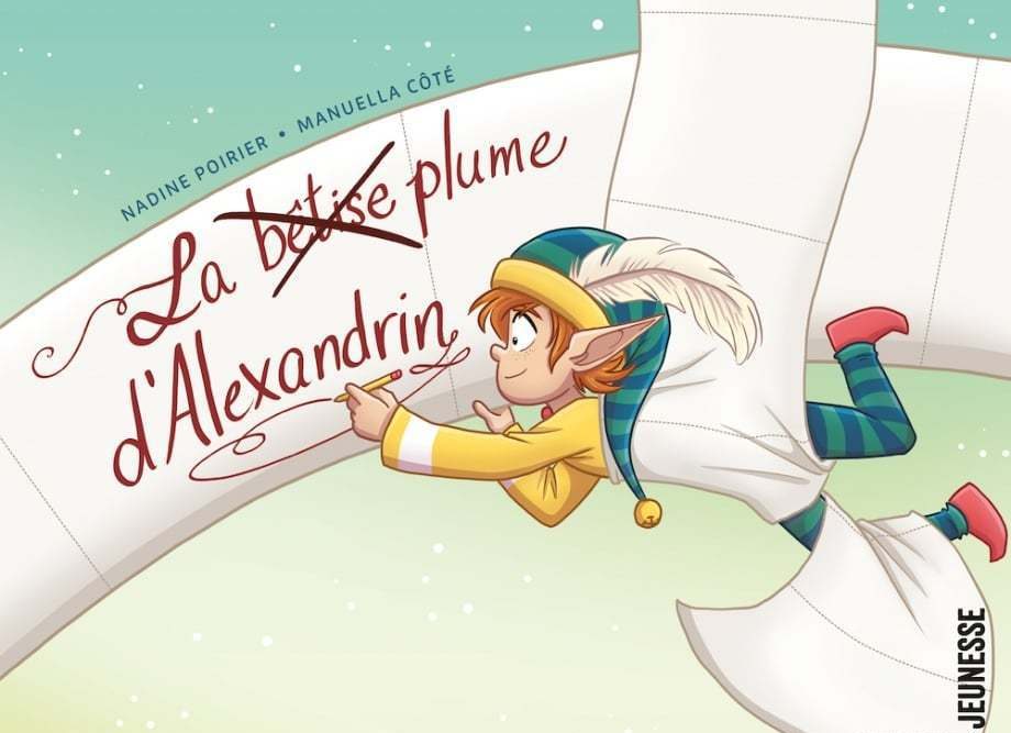 “Alexandrin lit les différents messages plusieurs fois, si bien qu’une fois le matin venu, il avait oublié sa mission de jouer des tours. Il va dévaler les escaliers en ski, chevaucher le train et il finit par trouver un gros rouleau de papier de toilette. Cependant, plutôt que de le dérouler un peu partout, il s’en sert pour écrire un mot à toute la famille. Il aura trouvé une façon de conjuguer sa passion pour les mots et sa mission de jouer des tours”, raconte Nadine Poirier.