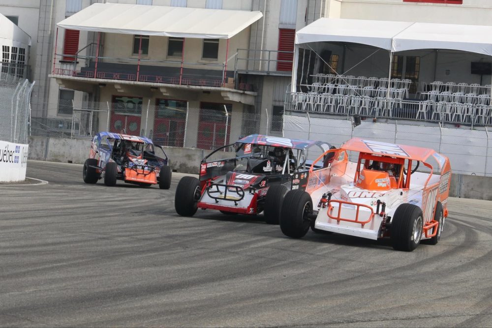 À la fin du premier tour (d’une course qualificative de 6 tours), Labbé a glissé en 4e place, pendant que Charland s’emparait de la tête devant Lessard. David Hébert en profitait pour se hisser au 3e échelon. Labbé viendra ensuite reprendre la 3e place au 3e tour, pendant que Camirand aussi s’avançait 5e.